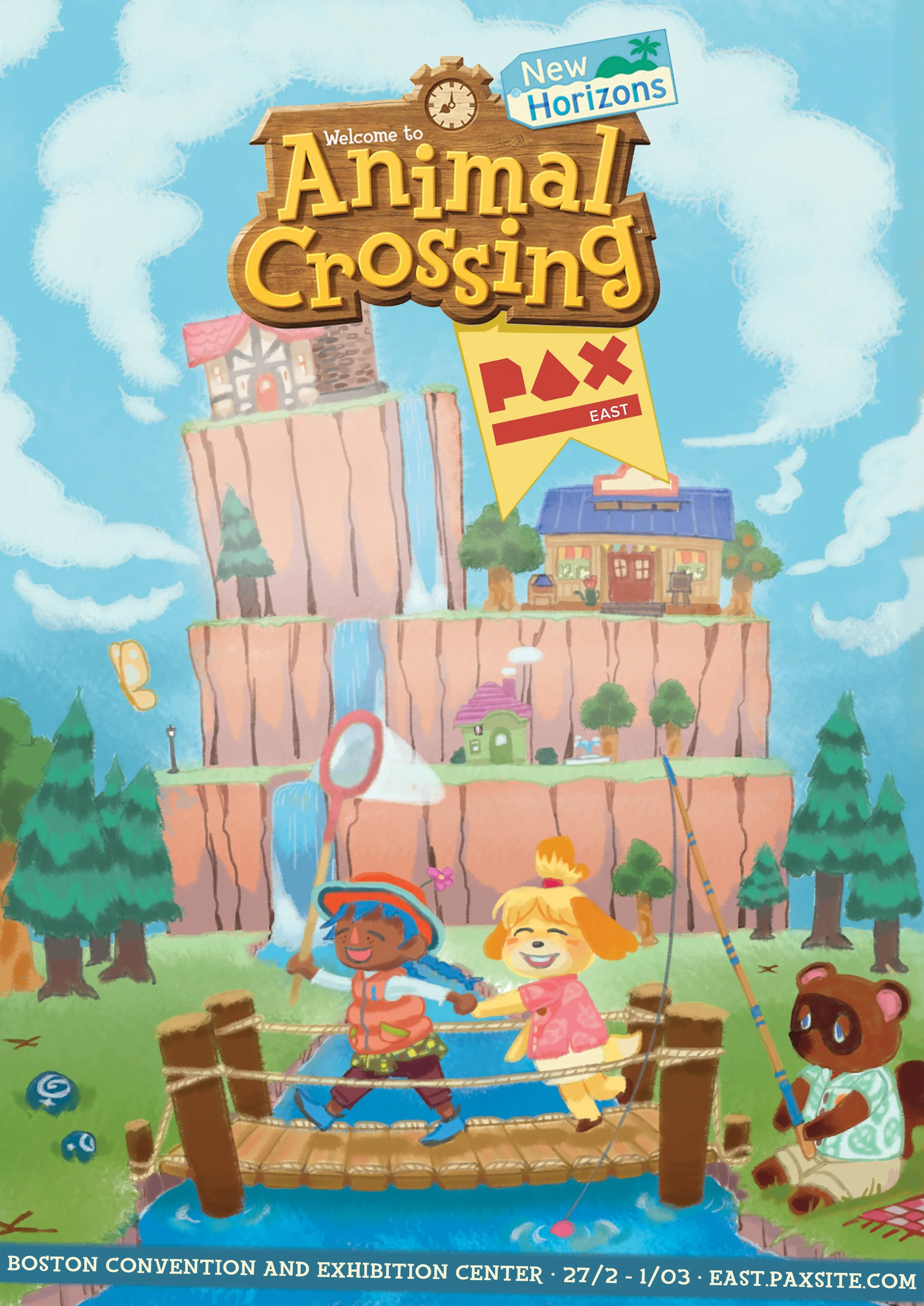 I drew this poster inspired by Nintendo’s Animal Crossing showcase in 2020 for PAX East, a video game convention in Boston. Mainly because I wished that I was there. This was a poster design exercise for university, nothing to do with PAX professionally.
